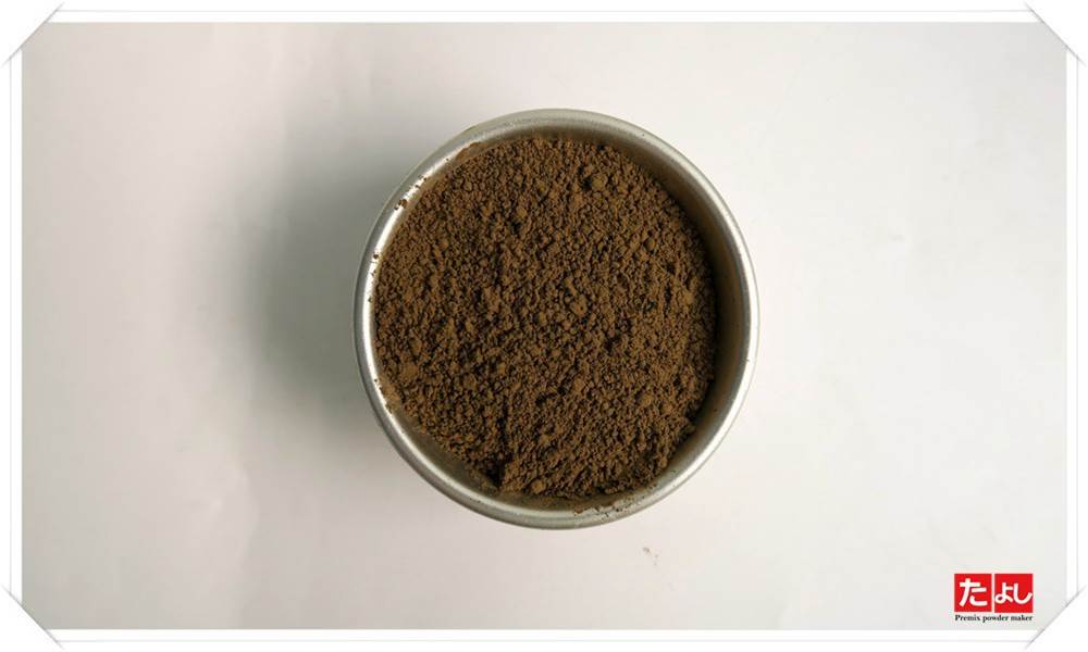 選用來台灣的茶葉,經過萎凋、殺青、揉捻、乾燥、研磨工法製成,沖泡後茶顏色呈現深褐色,茶香似烏龍茶風味,口感帶有茶葉的沙質感。無添加食品添加物及色素。顆粒大小300目。建議添加量:視實際情況適量添加。