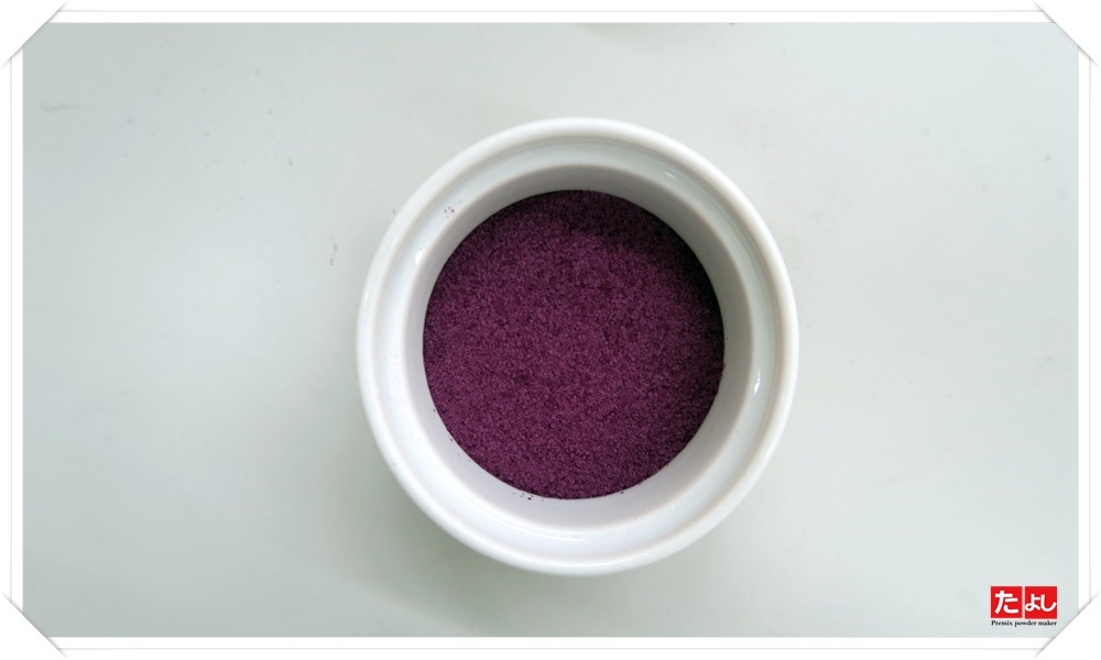 使用琉球群島原生種的紫心甘藷,經熟化乾燥後,粉碎成細粉狀。保留原本地瓜的顏色及口感,易受光線或氧而氧化化成藍色,屬自然現象請安心食用。