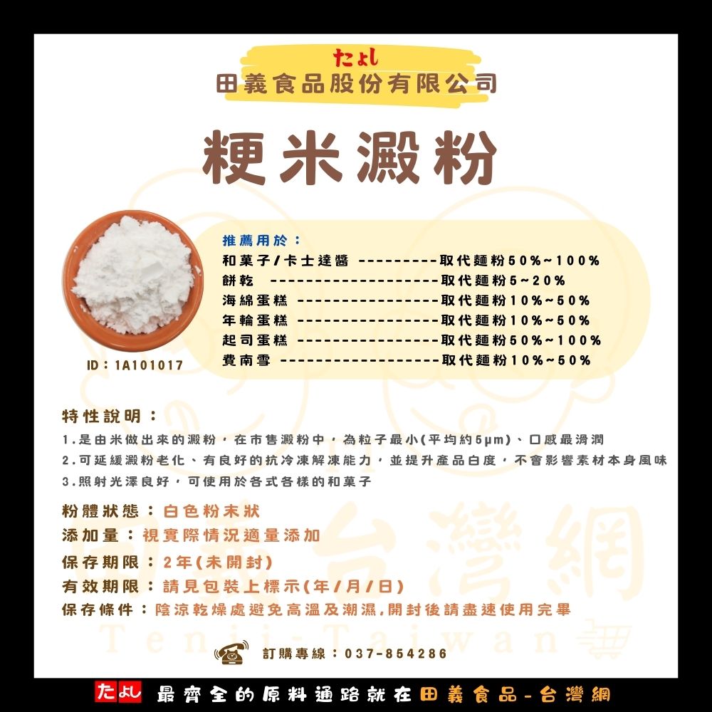 粳米澱粉 50.1%、小蘇打粉 0.1%、無鹽奶油 21.7%、泡打粉 1%、牛奶 8.3%、全蛋 8.3%、砂糖 10%、鹽 0.1% |